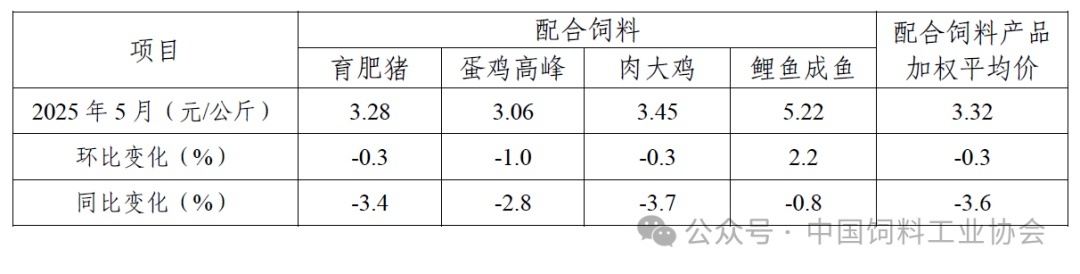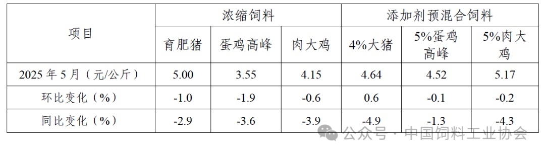 表3 2025年5月饲料企业浓缩饲料和添加剂预混合饲料平均价格